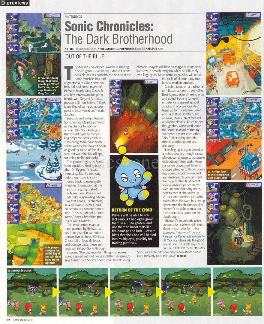從一開始,SEGA這位渾身是刺的吉祥物讓我們印象最深的就是快得眼花繚亂的腳步和閃電般的反應速度。那麽Sonic的角色扮演遊戲又會是怎樣呢?這類遊戲通常都是在考驗你的耐心和眼手協調能力。不過現在,Sonic Chronicles:The Dark Brotherhood製作者是BioWare,他們以 博得之門 與 舊共和國武士 而聞名于世,許多人認爲這些作品是龍與地下城與星際大戰系列的經典衍生作品。而這款作品,目前儘管只是初具規模,但是 歷代記 看起來會比這個系列最近的幾款遊戲來説更貼近它的本質。